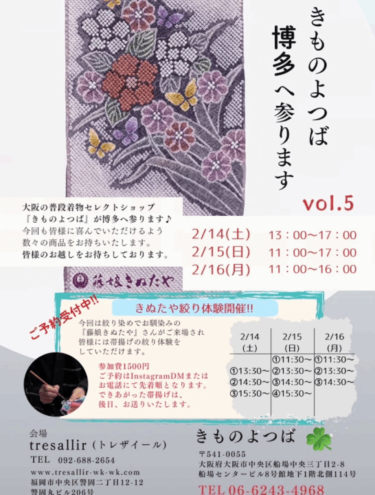 ※ご予約は「きものよつば」さんまでお願いいたします。