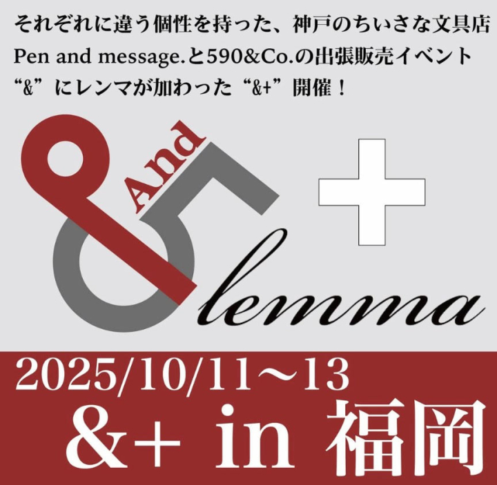 それぞれに違う個性を持った、神戸の小さな文具店「Pen and message.」と「590&Co.」による出張販売イベント ”&” に「レンマ」が加わった ”&+ in 福岡” を開催!